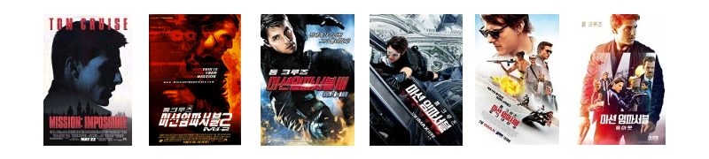 1996년부터 시작된 미션 임파서블 시리즈는 2023년 현재까지 7개의 작품이 만들어졌다. 30년이 가까운 세월 속에서도 장수할 수 있었던 비결은 주연 배우 톰 크루즈와 시그니처 액션이 아니었을까 생각된다. 영화의 제목처럼 불가능해 보이는 장면들을 실제로 해냈기 때문이다.