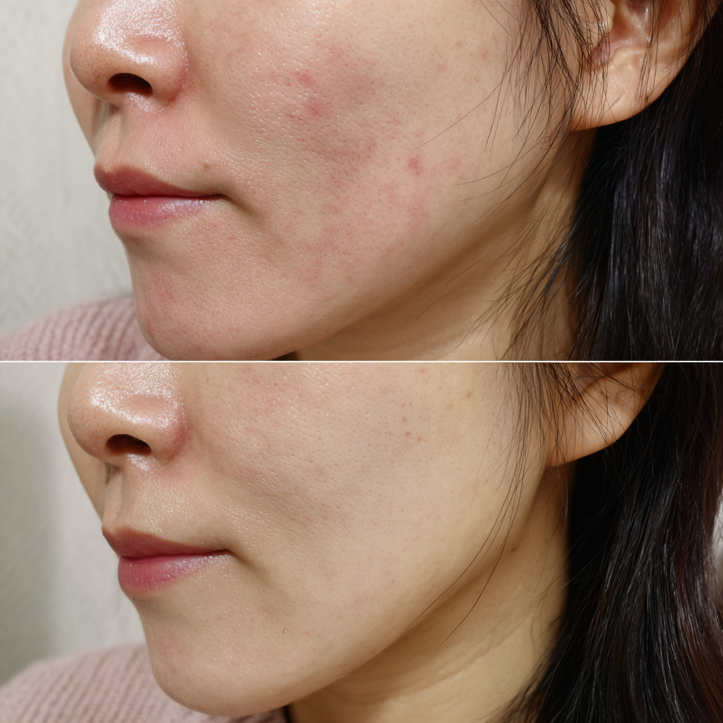 • 제품: 세라마이드, 병풀 추출물, 히알루론산, 판테놀 등 피부 장벽 강화, 진정, 보습에 초점을 맞춘 저자극 세럼이나 앰플을 선택합니다.