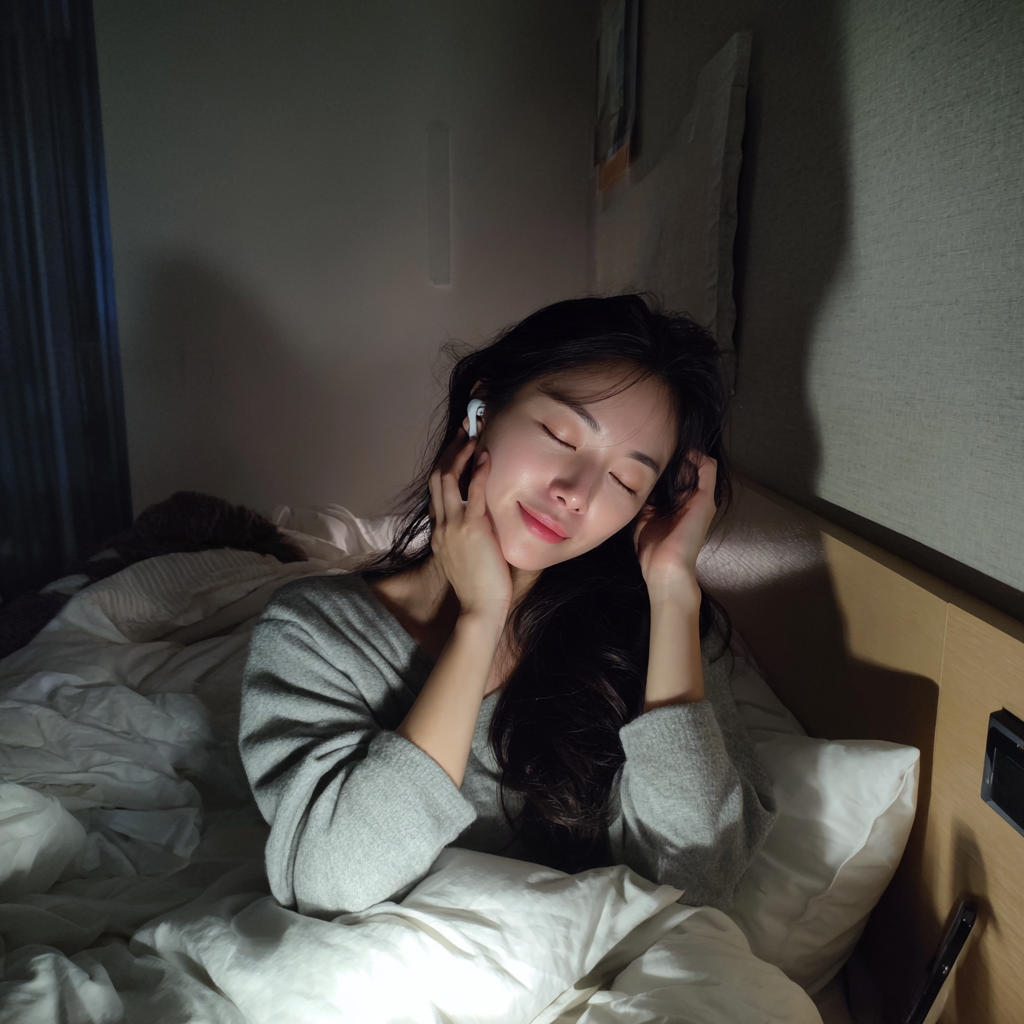 - 잔잔한 음악/백색 소음: 잠들기 전, 마음을 편안하게 해주는 잔잔한 클래식, 뉴에이지 음악, 자연의 소리(빗소리, 파도 소리 등), 또는 백색 소음(화이트 노이즈)을 작게 틀어놓는 것이 좋습니다. 이는 외부 소음을 차단하고 뇌파를 안정시켜 숙면을 유도합니다. 🎧