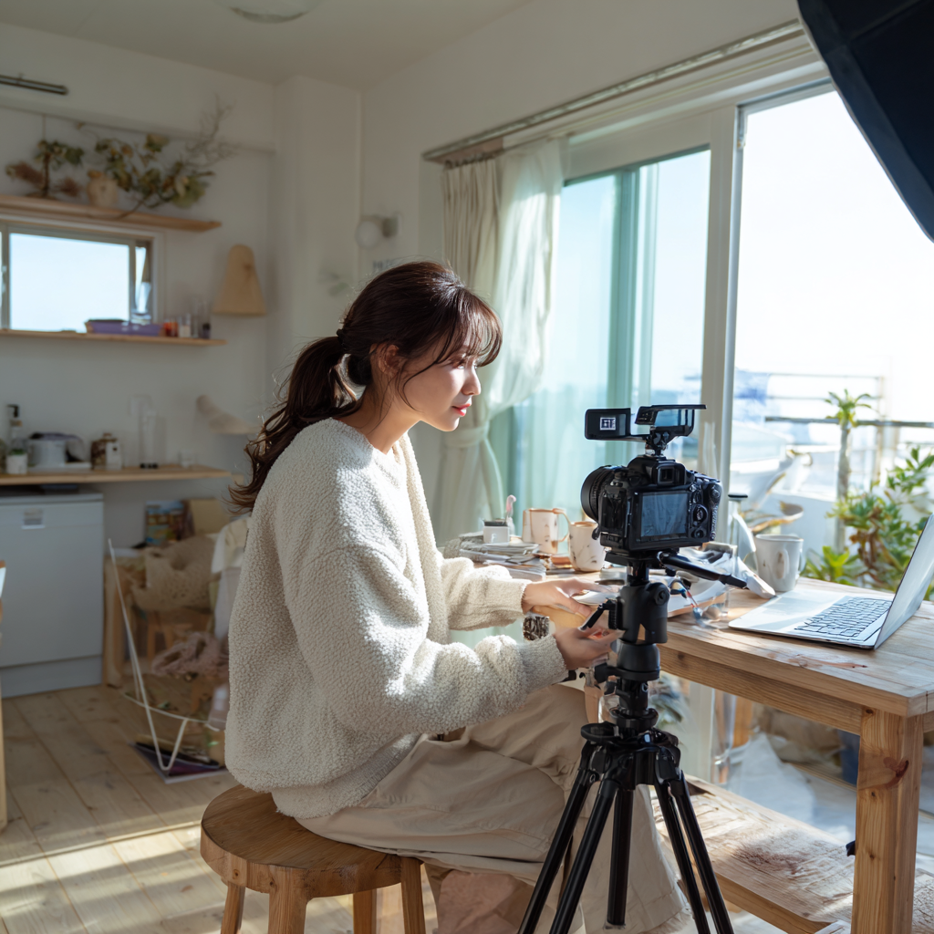 - 자연광을 최대한 활용하세요: ☀️ 가장 아름다운 조명은 바로 자연광입니다. 창가 근처에서 촬영하면 부드럽고 따뜻한 빛을 받아 감성적인 영상이 만들어집니다.