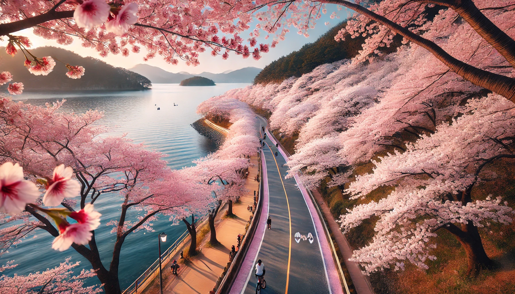 - 호수와 벚꽃이 어우러지는 아름다운 풍경