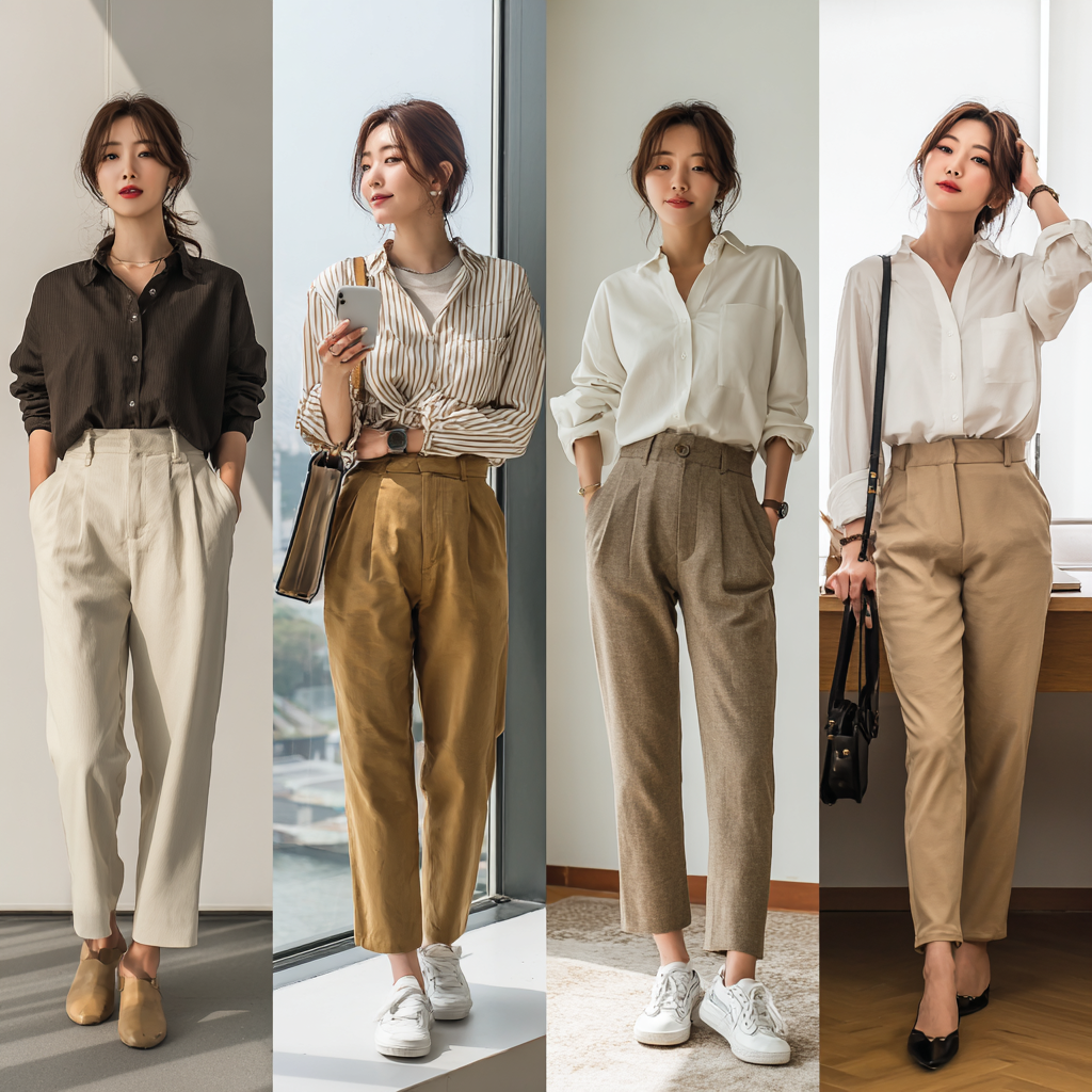 - 여성: 루즈핏 블라우스 또는 얇은 니트 + 와이드 슬랙스 또는 플리츠 스커트 + 편안한 로퍼 또는 굽 낮은 뮬. 👗