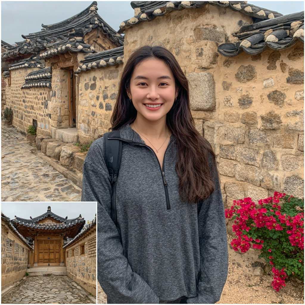 - 어울리는 장소: 군산의 낡은 건물 외벽, 경주의 따뜻한 한옥, 해 질 녘 골든아워.