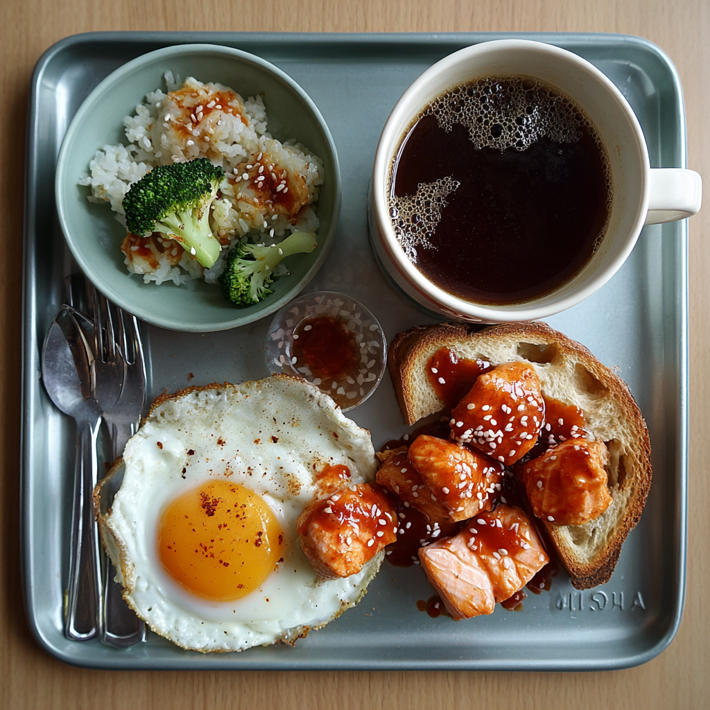 • 재료: 냉동 그린빈, 냉동 브로콜리, 양파, 시판 토마토 파스타 소스, 물, 치킨 스톡(선택), 계란.