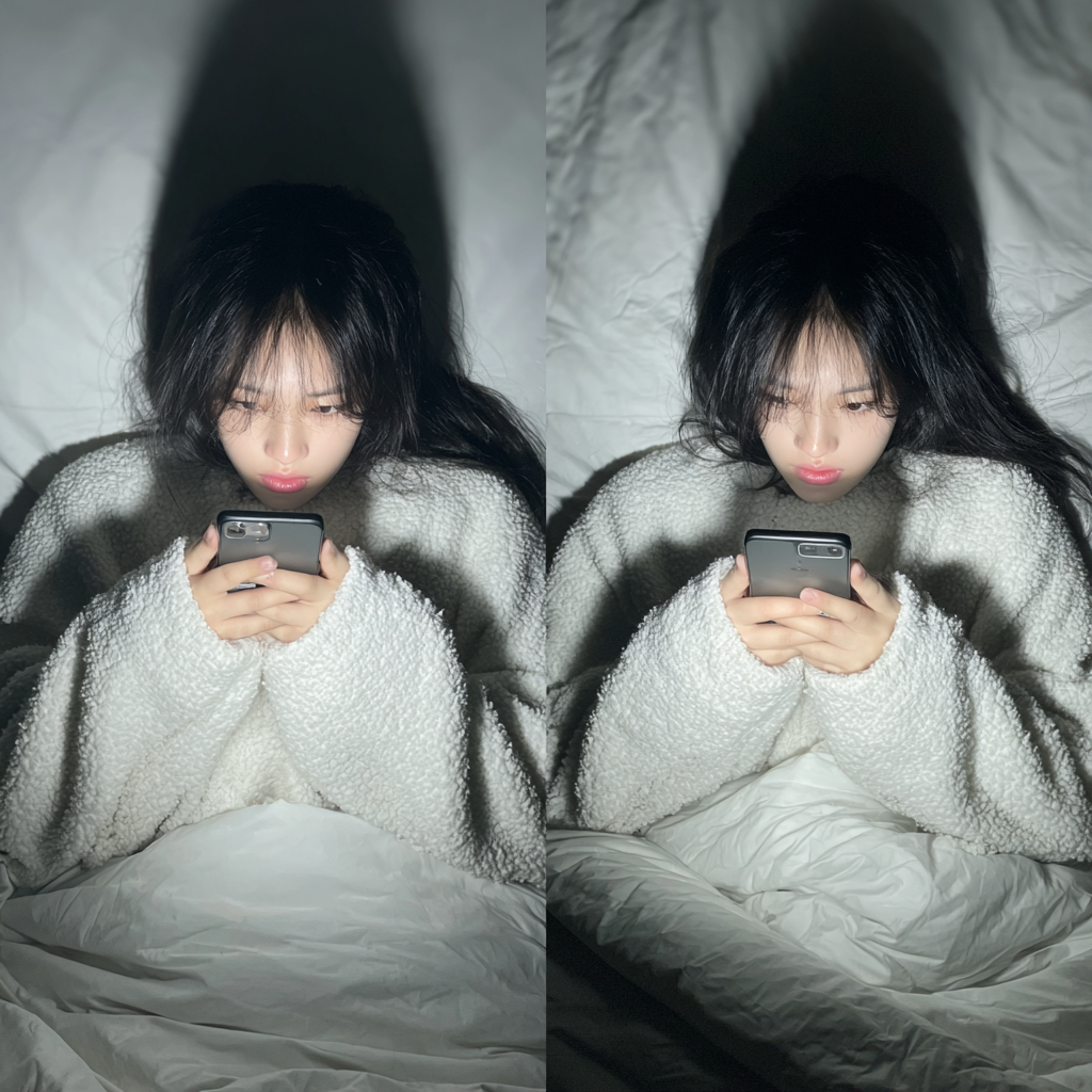 • 설정 내용: * 업무용 메신저(슬랙, 카톡 오픈채팅 등) 알림 완전 차단. * 블루라이트 필터(편안하게 화면 보기)를 강하게 적용. * 명상 앱이나 오디오북 앱만 홈 화면 상단에 배치.