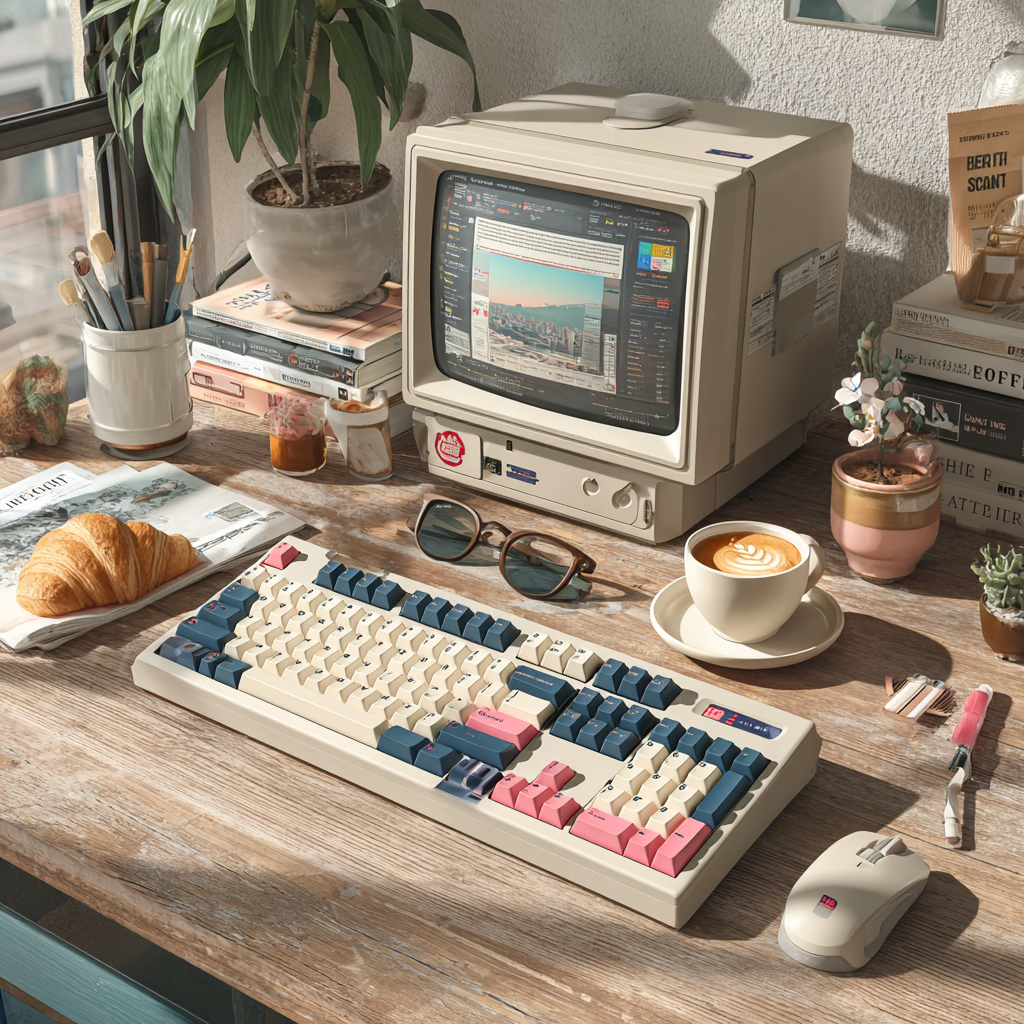 - 레트로 컨셉: 아이보리색 하우징에 베이지색 키캡을 매치하여 옛날 타자기나 80년대 컴퓨터 감성을 자극합니다.