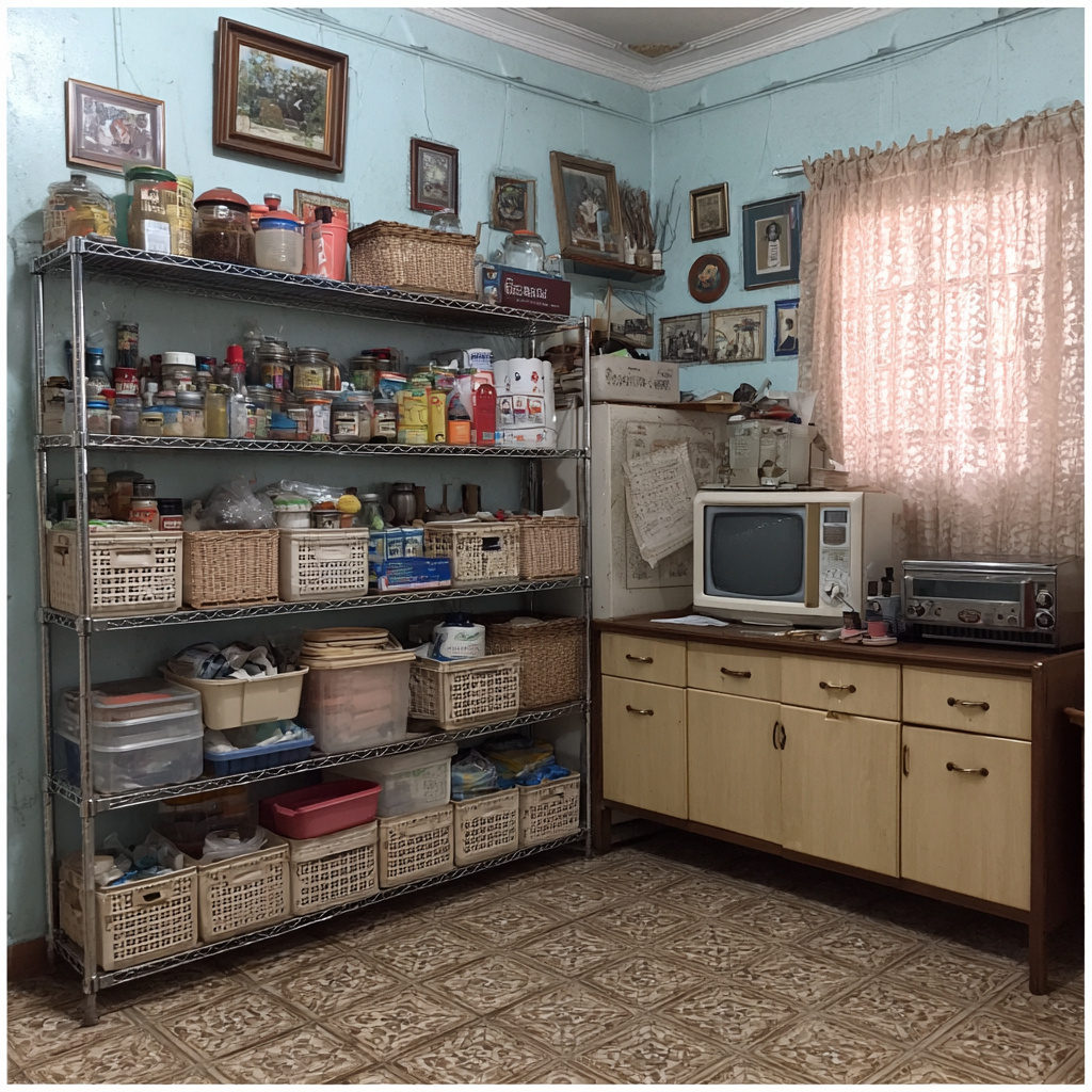 수직으로 높이 쌓아 올린 물건들은 내용물이 보이지 않으면 금세 잊히기 쉽습니다. 🏷️