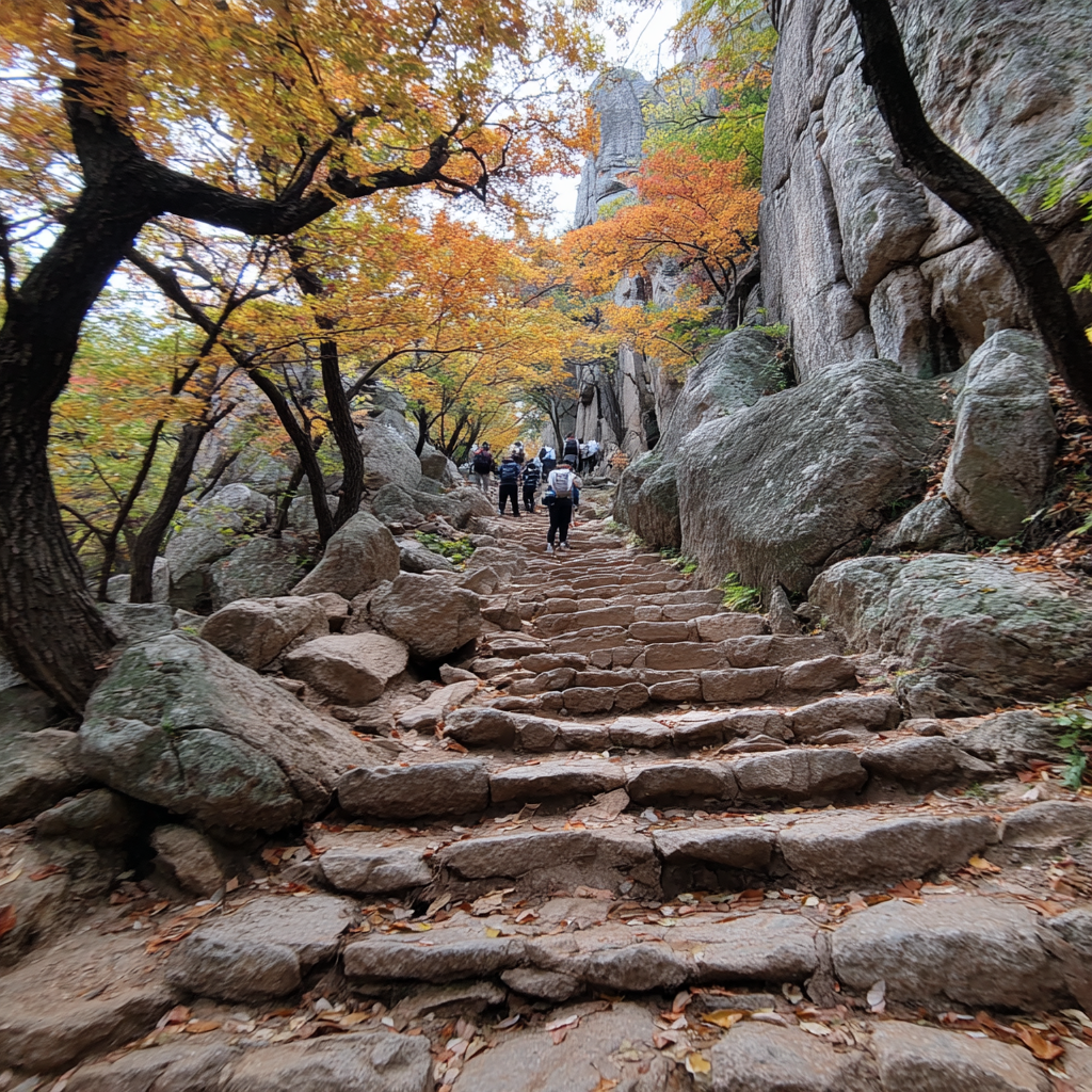 북한산의 최고봉인 백운대를 향하는 코스는 가파른 구간이 많아 초보자에게는 다소 어렵게 느껴질 수 있습니다. 🧗 하지만 정상에 올라 바라보는 서울의 풍경과 붉은 단풍의 조화는 그 어떤 고생도 잊게 할 만큼 아름답습니다. 🏆