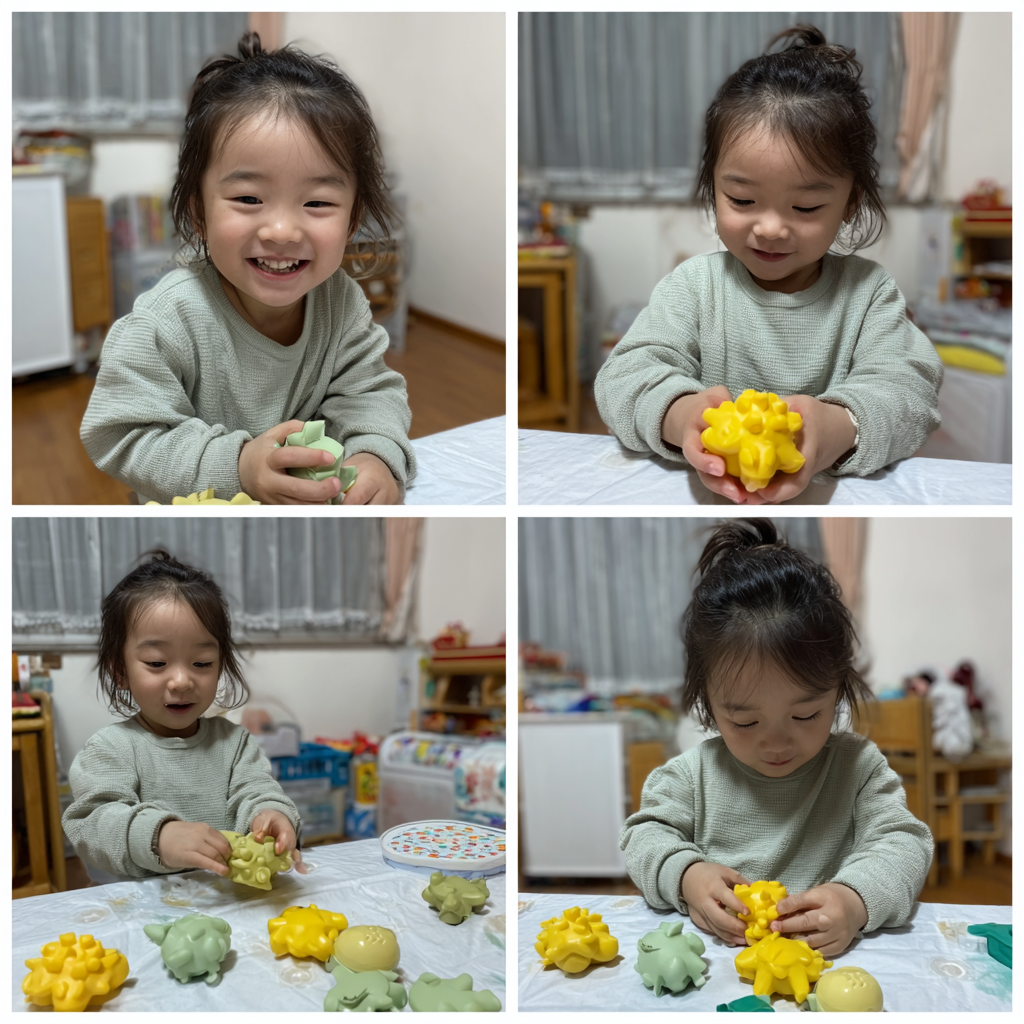 - 촉감 놀이 콩, 쌀, 밀가루, 물감 등 다양한 재료를 만지고 탐색하게 해주세요. 🥣 재료가 없다면 집 안에 있는 수건이나 인형 등 다양한 촉감의 물건을 만져보게 하는 것도 좋습니다. 이는 소근육 발달과 뇌 발달을 촉진합니다.