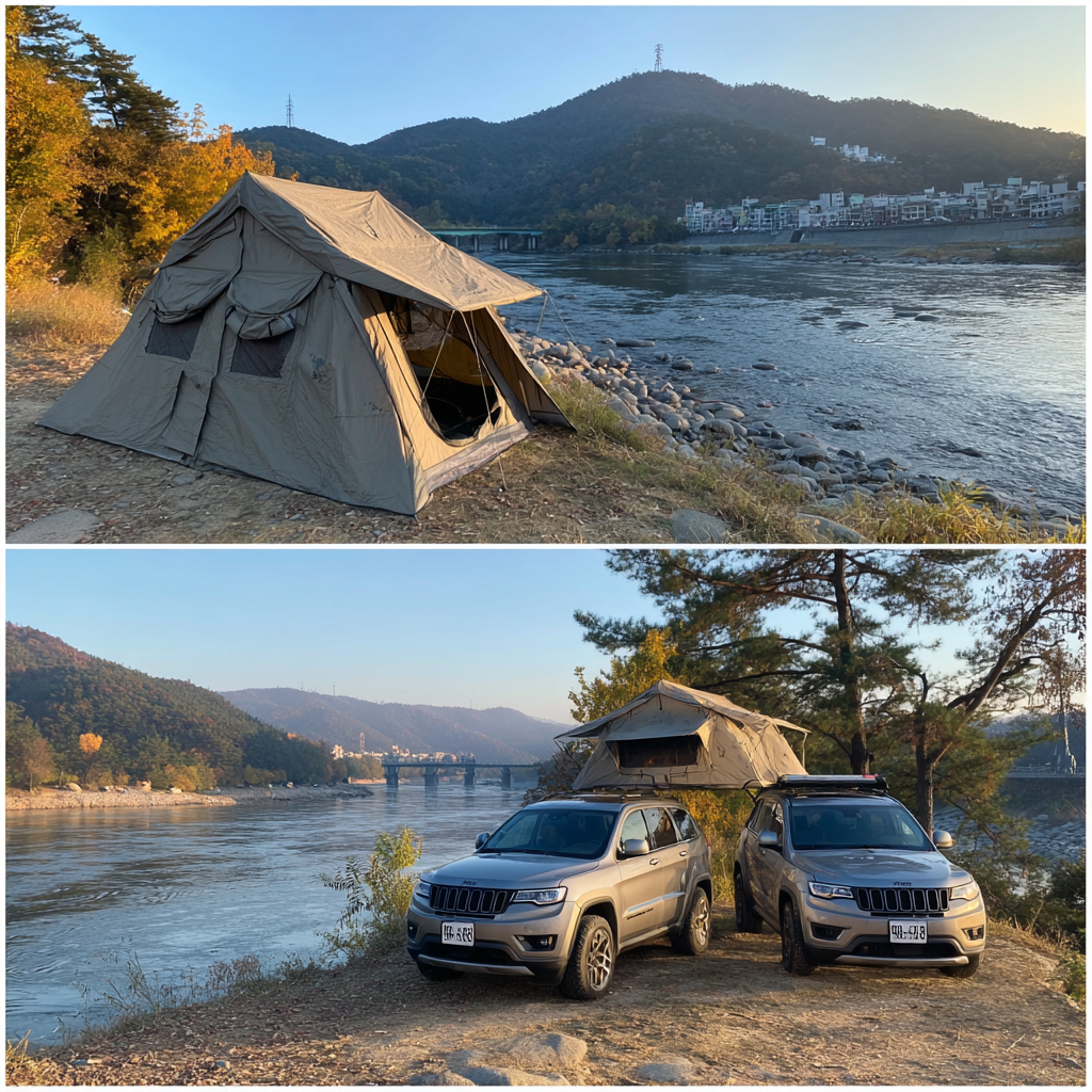 - 혼자 또는 둘이서: 간편한 트렁크 텐트나 루프탑 텐트가 좋습니다.
