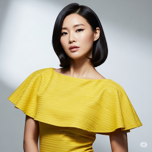 - 오프숄더, 보트넥, 스퀘어 넥: 가로로 넓게 파인 넥 라인은 어깨가 넓어 보이는 착시 효과를 줍니다. 오프숄더는 어깨를 과감하게 드러내어 시선을 집중시키고, 보트넥과 스퀘어 넥은 시각적으로 어깨를 확장시켜 줍니다.
